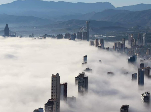 Spagna - Uno tsunami di nebbia dal mare travolge la localita' di Benidorm (video)